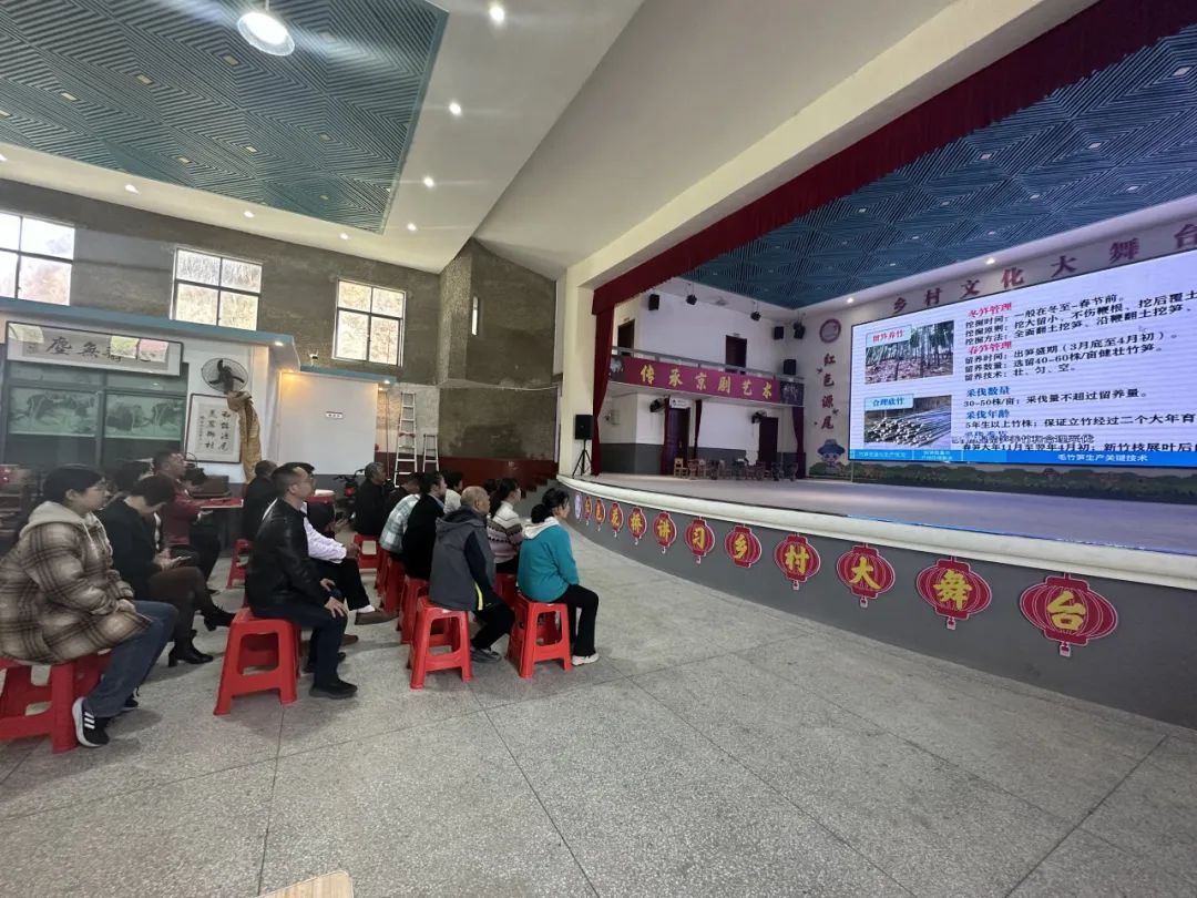 此次培训创新性地采用“线上教学+线下指导”双轨并行的模式。活动现场,大家围坐在一起,认真观看教学视频。授课老师用通俗易懂的语言,深入浅出地从苦笋栽植的最佳时机、优质竹苗的精准挑选、科学合理的造林密度设定、规范高效的栽植方法、苦笋采挖的技巧与时机、幼林抚育的要点,再到成林经营的策略等多个方面,向在场的20余位学员进行细致讲解,帮助学员们构建起系统全面的苦笋竹林培育知识体系。