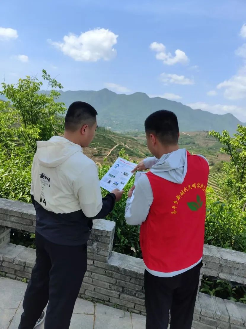 正值春茶采摘季,茶平乡万亩茶园迎来黄金观赏期,层层叠叠的茶垄在山间蜿蜒起伏,清新馥郁的茶香随风飘散,宛如一幅山水画卷。吸引大批游客前来采茶体验、摄影打卡。为应对客流高峰,茶平乡及时组织交通疏导员与志愿者队伍,通过定点值守、流动巡查相结合的方式,疏导景区周边交通压力,为游客提供路线指引、停车协助等贴心服务。现场工作人员还为游客发放精心印制的茶平乡旅游导览图,向游客介绍茶平乡当前季节适宜出游的景点。