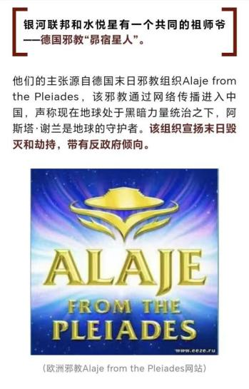 ▲阿斯塔·谢兰与耶稣基督 林显宗炮制《与灵沟通》《我是外星人》《水悦星》《从未死过》《心灵基因改造》等书籍以及电影《末日抉择》,推出“十八条自我沟通步骤”“时空对话技术”“心灵手术技术”等沟通及技法,不仅公然“引导人们心灵回溯前世,预观未来”,还要“开启心灵能量,清除心理障碍,圆满生命因缘”,甚至引向与花草、动物等天地万物对话,预测台风、地震等自然灾害。 举办非法培训,大肆骗敛钱财 原广东恩多恩心理咨询公司曾是鼓吹“唯识深层沟通”邪说在我国境内的总部,自称“呼唤内心深处的爱与智慧,透过独特的沟通技术,协助人们突破两性、亲子、疾病、财富等障碍,从而获得喜悦、自在、丰盛、富足的生活”。该组织通过售卖光碟、发展学员,疯狂敛财,短短数年便在全国24个省市区开设了57个分中心,非法敛财6300多万元。部分学员为此变卖家产、透支信用卡,最后债台高筑、无以为继。该组织学员中有多人精神失常,甚至因贻误病情死亡,有学员甚至在参加“深层沟通”培训课后产生了严重的自杀倾向。 恩多恩公司被广东警方打击处理后,林显宗将该迷信邪说改头换面,卷土重来,于2021年9月依托大陆骨干成立了“星空学院大陆总中心”,授权丁力为大陆唯一助理。安排弟子班学员成立“普贤洲心灵文化中心”培训班、“高维光之导师弟子班”,大肆宣扬林显宗迷信邪说,递进式举办“基因班”“圆满班”“学分班”等等,直至费用高达每人14.4万元人民币的“高维光之导师弟子班”,各类网络培训班共计40余期,短时间内非法敛财1700余万元,所得赃款全部用于林显宗与丁力及其他骨干成员的层层分成。