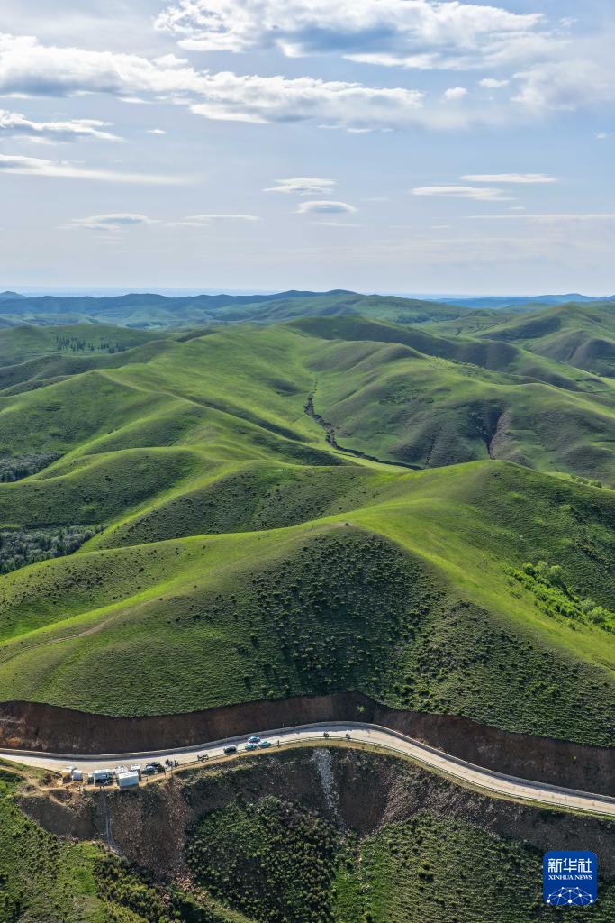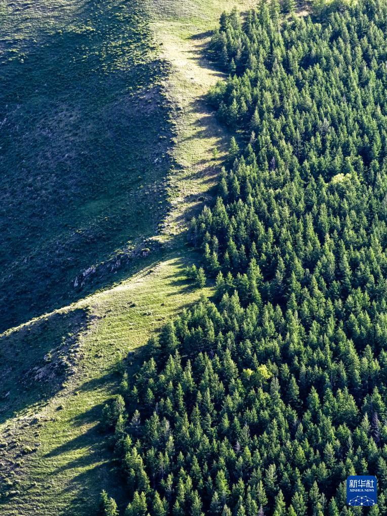 这是6月5日在内蒙古大青山国家级自然保护区拍摄的草原风光(无人机照片)。 盛夏时节,位于内蒙古自治区呼和浩特市北部的内蒙古大青山国家级自然保护区绿意盎然,呈现出一派生机勃勃的美丽景象。 新华社记者 马金瑞 摄