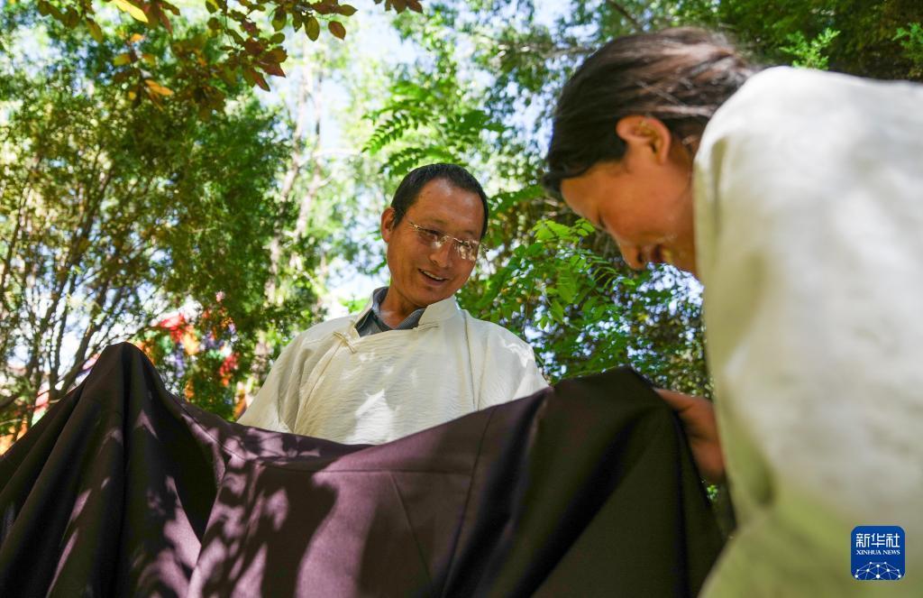洛桑麦朗(左)在学校和学徒一起查验成品藏装品质(8月15日摄)。 在拉萨雪堆白传统手工艺术学校,60岁的西藏自治区级非物质文化遗产项目藏族服饰(拉萨服饰)代表性传承人洛桑麦朗,与学徒一道研究、制作藏装。从艺四十余载,他培养了百余名弟子,还参与编撰教材、建立藏族服饰数据库等工作。在他的巧手下,新式藏装将传统与现代交融,让非遗技艺与现代审美碰撞,成为街头一道靓丽的风景。 新华社记者 晋美多吉 摄 洛桑麦朗手绘的藏装制作要领(8月15日摄)。 在拉萨雪堆白传统手工艺术学校,60岁的西藏自治区级非物质文化遗产项目藏族服饰(拉萨服饰)代表性传承人洛桑麦朗,与学徒一道研究、制作藏装。从艺四十余载,他培养了百余名弟子,还参与编撰教材、建立藏族服饰数据库等工作。在他的巧手下,新式藏装将传统与现代交融,让非遗技艺与现代审美碰撞,成为街头一道靓丽的风景。 新华社记者 晋美多吉 摄 洛桑麦朗(右)在学校指导学徒裁剪布料(8月15日摄)。 在拉萨雪堆白传统手工艺术学校,60岁的西藏自治区级非物质文化遗产项目藏族服饰(拉萨服饰)代表性传承人洛桑麦朗,与学徒一道研究、制作藏装。从艺四十余载,他培养了百余名弟子,还参与编撰教材、建立藏族服饰数据库等工作。在他的巧手下,新式藏装将传统与现代交融,让非遗技艺与现代审美碰撞,成为街头一道靓丽的风景。 新华社记者 晋美多吉 摄 洛桑麦朗(左)在学校指导学徒(8月15日摄)。 在拉萨雪堆白传统手工艺术学校,60岁的西藏自治区级非物质文化遗产项目藏族服饰(拉萨服饰)代表性传承人洛桑麦朗,与学徒一道研究、制作藏装。从艺四十余载,他培养了百余名弟子,还参与编撰教材、建立藏族服饰数据库等工作。在他的巧手下,新式藏装将传统与现代交融,让非遗技艺与现代审美碰撞,成为街头一道靓丽的风景。 新华社记者 晋美多吉 摄 洛桑麦朗在检查做好的藏装(8月15日摄)。 在拉萨雪堆白传统手工艺术学校,60岁的西藏自治区级非物质文化遗产项目藏族服饰(拉萨服饰)代表性传承人洛桑麦朗,与学徒一道研究、制作藏装。从艺四十余载,他培养了百余名弟子,还参与编撰教材、建立藏族服饰数据库等工作。在他的巧手下,新式藏装将传统与现代交融,让非遗技艺与现代审美碰撞,成为街头一道靓丽的风景。 新华社记者 晋美多吉 摄 洛桑麦朗(左)来到毕业生创业的店铺里,询问生意情况(8月15日摄)。 在拉萨雪堆白传统手工艺术学校,60岁的西藏自治区级非物质文化遗产项目藏族服饰(拉萨服饰)代表性传承人洛桑麦朗,与学徒一道研究、制作藏装。从艺四十余载,他培养了百余名弟子,还参与编撰教材、建立藏族服饰数据库等工作。在他的巧手下,新式藏装将传统与现代交融,让非遗技艺与现代审美碰撞,成为街头一道靓丽的风景。 新华社记者 晋美多吉 摄 模特在拉萨八廓街“繁饰自然·衣彩拉萨——拉萨新年服饰秀”活动中巡游(1月3日摄)。 在拉萨雪堆白传统手工艺术学校,60岁的西藏自治区级非物质文化遗产项目藏族服饰(拉萨服饰)代表性传承人洛桑麦朗,与学徒一道研究、制作藏装。从艺四十余载,他培养了百余名弟子,还参与编撰教材、建立藏族服饰数据库等工作。在他的巧手下,新式藏装将传统与现代交融,让非遗技艺与现代审美碰撞,成为街头一道靓丽的风景。 新华社记者 晋美多吉 摄 |