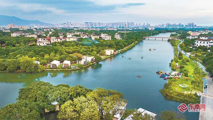 日前,莆田市荔城区西天尾镇北大村,游客在木兰溪支流延寿溪上划皮划艇。北大村正在打造集露营基地、状元文化、垂钓闲趣、围炉雅集、皮划艇经济、潮玩互动等于一体的新型乡村文旅示范点。