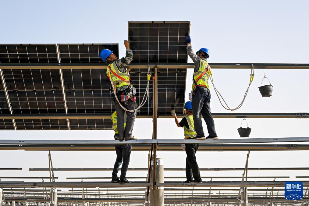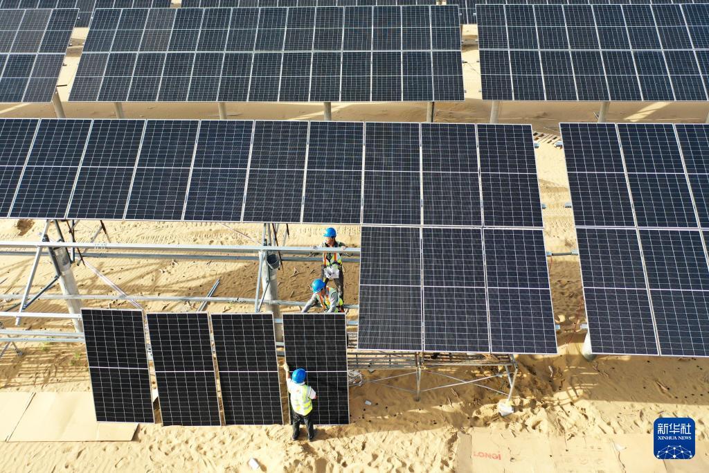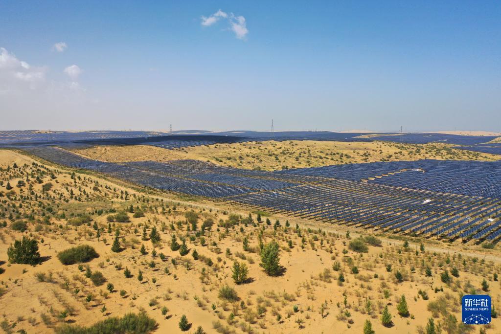 这是库布其沙漠里的杭锦旗朔方新能源大基地(9月2日摄,无人机照片)。 近年来,内蒙古开展防沙治沙与风电光伏一体化工程,推进库布其沙漠治理。目前,在鄂尔多斯市杭锦旗等库布其沙漠北部地区,一片片光伏基地在促进新能源产业发展的同时,成为当地生态治理、经济发展的坚实屏障。“光伏+生态治理”建设模式实现板上发电,板间、板下统筹兼顾特色生态修复、经济作物、造林绿化与技术创新,打造立体生态修复模式,让沙海变成绿色电能涌动的“蓝海”,实现生态效益与经济效益共赢。 新华社记者 李志鹏 摄 这是库布其沙漠里的蒙西基地库布其200万千瓦光伏治沙项目区(9月3日摄,无人机照片)。 近年来,内蒙古开展防沙治沙与风电光伏一体化工程,推进库布其沙漠治理。目前,在鄂尔多斯市杭锦旗等库布其沙漠北部地区,一片片光伏基地在促进新能源产业发展的同时,成为当地生态治理、经济发展的坚实屏障。“光伏+生态治理”建设模式实现板上发电,板间、板下统筹兼顾特色生态修复、经济作物、造林绿化与技术创新,打造立体生态修复模式,让沙海变成绿色电能涌动的“蓝海”,实现生态效益与经济效益共赢。 新华社记者 李志鹏 摄 工程机械在库布其沙漠里的杭锦旗朔方新能源大基地施工(9月2日摄,无人机照片)。 近年来,内蒙古开展防沙治沙与风电光伏一体化工程,推进库布其沙漠治理。目前,在鄂尔多斯市杭锦旗等库布其沙漠北部地区,一片片光伏基地在促进新能源产业发展的同时,成为当地生态治理、经济发展的坚实屏障。“光伏+生态治理”建设模式实现板上发电,板间、板下统筹兼顾特色生态修复、经济作物、造林绿化与技术创新,打造立体生态修复模式,让沙海变成绿色电能涌动的“蓝海”,实现生态效益与经济效益共赢。 新华社记者 李志鹏 摄 工人在库布其沙漠里的杭锦旗朔方新能源大基地安装光伏板(9月2日摄,无人机照片)。 近年来,内蒙古开展防沙治沙与风电光伏一体化工程,推进库布其沙漠治理。目前,在鄂尔多斯市杭锦旗等库布其沙漠北部地区,一片片光伏基地在促进新能源产业发展的同时,成为当地生态治理、经济发展的坚实屏障。“光伏+生态治理”建设模式实现板上发电,板间、板下统筹兼顾特色生态修复、经济作物、造林绿化与技术创新,打造立体生态修复模式,让沙海变成绿色电能涌动的“蓝海”,实现生态效益与经济效益共赢。 新华社记者 李志鹏 摄 这是在库布其沙漠里的蒙西基地库布其200万千瓦光伏治沙项目区光伏板下种植的农作物(9月3日摄)。 近年来,内蒙古开展防沙治沙与风电光伏一体化工程,推进库布其沙漠治理。目前,在鄂尔多斯市杭锦旗等库布其沙漠北部地区,一片片光伏基地在促进新能源产业发展的同时,成为当地生态治理、经济发展的坚实屏障。“光伏+生态治理”建设模式实现板上发电,板间、板下统筹兼顾特色生态修复、经济作物、造林绿化与技术创新,打造立体生态修复模式,让沙海变成绿色电能涌动的“蓝海”,实现生态效益与经济效益共赢。 新华社记者 李志鹏 摄 工人在库布其沙漠里的杭锦旗朔方新能源大基地安装光伏板(9月2日摄)。 近年来,内蒙古开展防沙治沙与风电光伏一体化工程,推进库布其沙漠治理。目前,在鄂尔多斯市杭锦旗等库布其沙漠北部地区,一片片光伏基地在促进新能源产业发展的同时,成为当地生态治理、经济发展的坚实屏障。“光伏+生态治理”建设模式实现板上发电,板间、板下统筹兼顾特色生态修复、经济作物、造林绿化与技术创新,打造立体生态修复模式,让沙海变成绿色电能涌动的“蓝海”,实现生态效益与经济效益共赢。 新华社记者 李志鹏 摄 这是库布其沙漠里的蒙西基地库布其200万千瓦光伏治沙项目区(9月3日摄,无人机照片)。 近年来,内蒙古开展防沙治沙与风电光伏一体化工程,推进库布其沙漠治理。目前,在鄂尔多斯市杭锦旗等库布其沙漠北部地区,一片片光伏基地在促进新能源产业发展的同时,成为当地生态治理、经济发展的坚实屏障。“光伏+生态治理”建设模式实现板上发电,板间、板下统筹兼顾特色生态修复、经济作物、造林绿化与技术创新,打造立体生态修复模式,让沙海变成绿色电能涌动的“蓝海”,实现生态效益与经济效益共赢。 新华社记者 李志鹏 摄 |