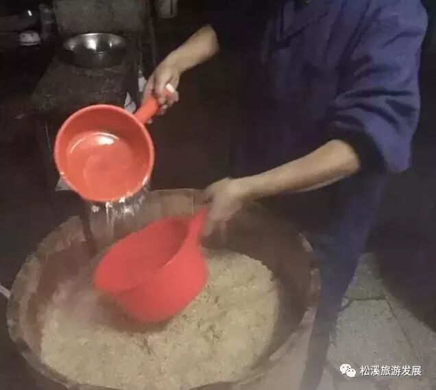 | 山里的汉子爱喝酒,山里的媳妇会酿酒。 每年新谷归仓,松溪几乎家家酿酒,户户飘香。大户人家酿五六坛,小户人家酿二三坛。就是不会喝酒的人家也要酿上一坛,用于待客或作煮菜的佐料。 松溪人酿酒是很讲究的。 酿酒的时间一般在立冬的第一场雨之后,此时的秋水已被冬水替换,所以称之为“酿冬酒”。水,也十分讲究,要用井水或泉水,河水或自来水是不用的。通常一坛酒,用米八斗,水一担。当然有的富足人家要酿好酒,则水、米的比例就得相应小些。