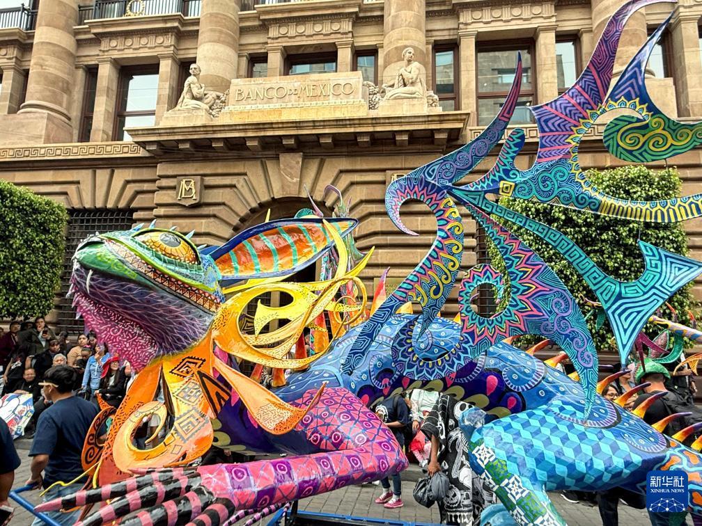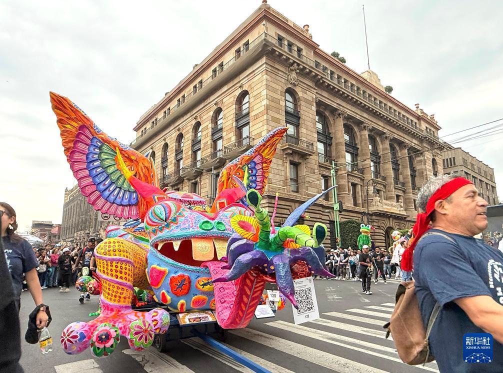 这是10月18日在墨西哥首都墨西哥城拍摄的魔幻动物大游行现场(手机照片)。 当日,为迎接即将到来的亡灵节,墨西哥城举办魔幻动物“Alebrijes”大游行。“Alebrijes”是一种墨西哥传统手工艺品,用鲜艳的颜色和丰富的图案装饰,展现充满想象力的奇幻动物形象。 新华社记者 武巍 摄