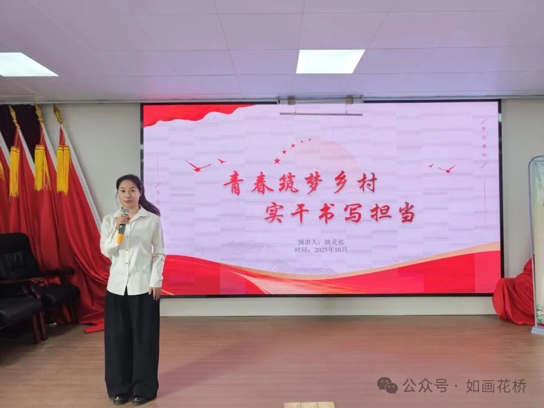 理论培训余音未绕,实战演练紧随而至。10月24日,花桥乡“我与乡村振兴”第二期青年干部主题演讲比赛将系列活动推向高潮。十位青年干部依次登台,结合自身实践,抒怀青春志向。
