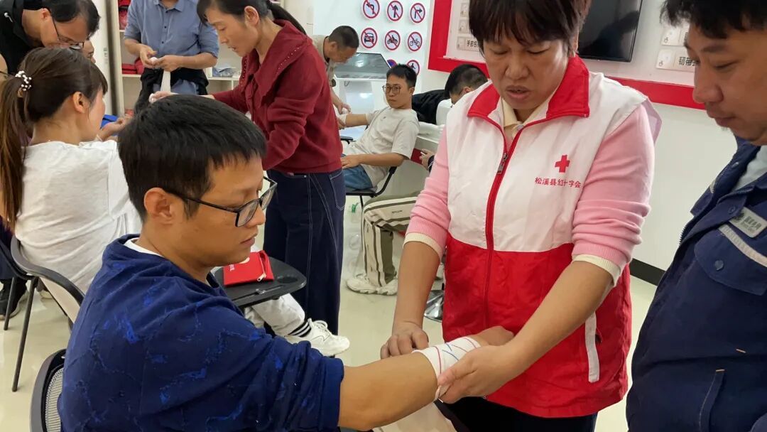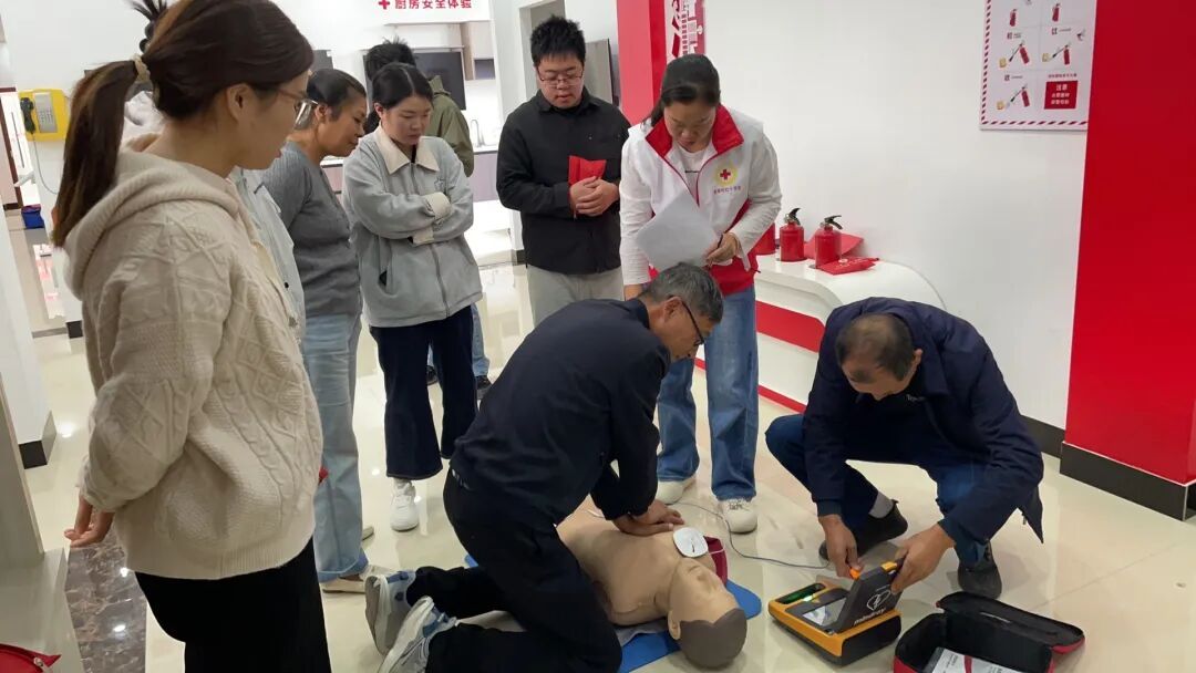 此次培训聚焦实用急救技能,内容涵盖成人心肺复苏、创伤救护、逃生避险及危重急症、意外伤害处理等关键领域。讲师针对触电、高空坠落等高频意外场景,详细拆解应急处置流程与注意事项,确保培训内容与员工工作实际紧密贴合。 在实操环节,红十字会导师严抠细节,现场演示心肺复苏的完整流程,涵盖按压深度、人工呼吸节奏及急救设备使用等关键要领。参训员工分组在模拟人上反复练习,精准掌握胸外按压与人工呼吸的协同技巧。随后,创伤救护训练则聚焦三角巾固定、止血带使用等实操,有效提升骨折固定与伤口处理的应急能力。