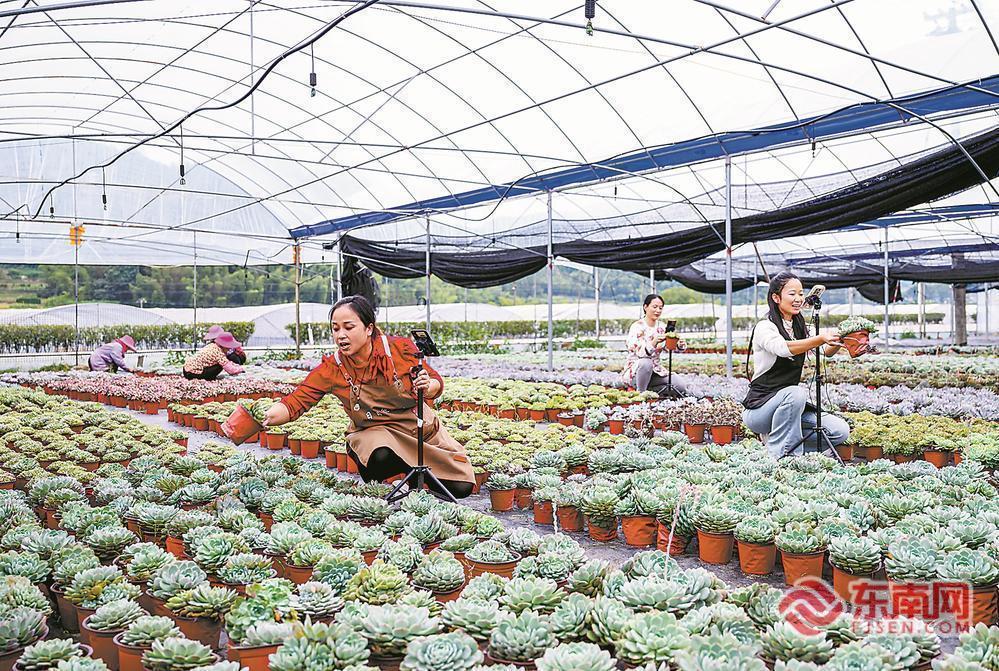 东南网11月6日报道(福建日报记者 施辰静 通讯员 雷露微 摄) 近日,宁化县安乐多肉种植基地迎来销售旺季。主播抢抓“双11”到来的黄金周期,在大棚内热情地向直播间顾客展示、推销各种多肉植物,一旁的村民快速有序地将售出的盆栽分类打包。 2020年以来,宁化县安乐镇引进企业投资1000万元,建设安乐多肉种植基地,大力发展以多肉植物为主的绿色生态经济,改变了村民以往单纯种植水稻、烤烟等经济作物的传统方式。目前,该基地已发展成福建省单体规模最大、品种最多的多肉产业园,母棚培育品种160余种,子棚可销售品种260余种,线上直播营业额每月可达34万余元,年产值超过380万元。 |