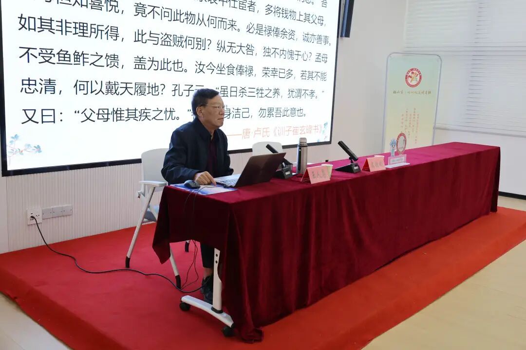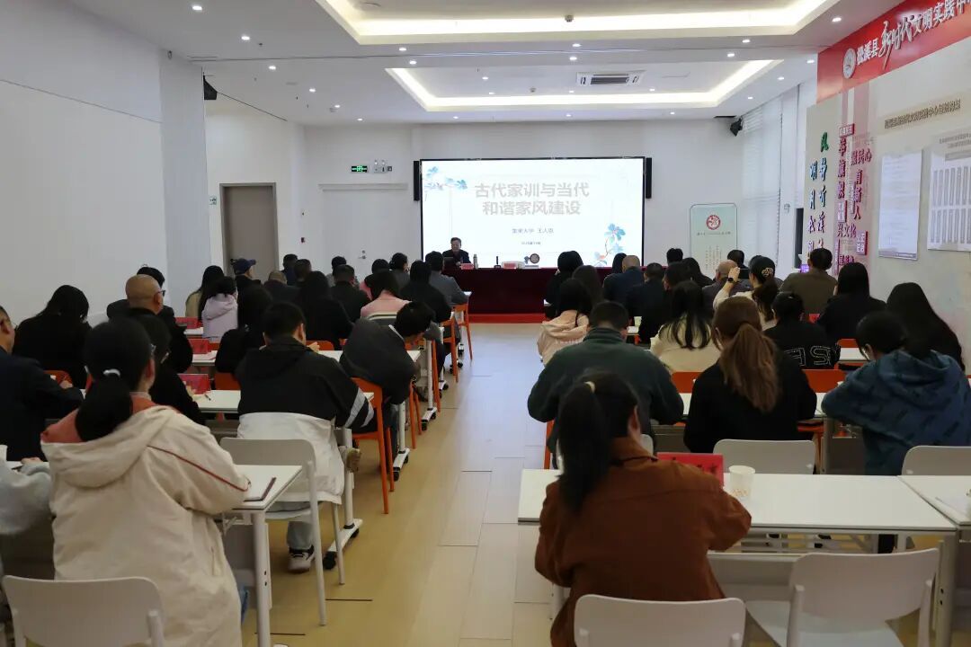 主讲人以《古代家训与当代和谐家风建设》为题,用诙谐幽默、浅显易懂的阐释,声情并茂地带领现场听众走进古代家训的文化殿堂。他深入剖析 “仁义礼智信、忠恕孝悌俭” 十大核心内涵的时代价值,从为人处世的处世之道、读书治学的成才之道,到和睦亲邻的理家之道、为官仕宦的济世之道,全方位解读传统家训跨越时空的生命力。同时,结合剖析当代社会现实案例,予人以深刻警醒启迪,为当代和谐家风建设提供生动指引与实践借鉴,赢得现场阵阵掌声。