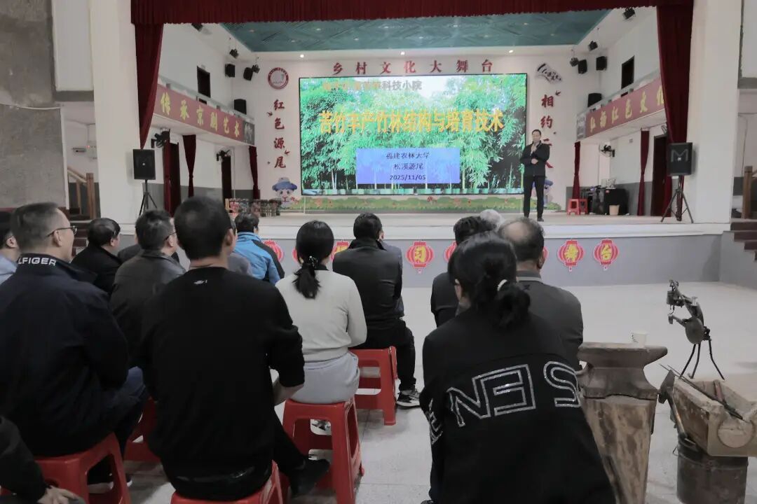 11月5日,松溪苦笋科技小院专家团、福建农林大学林学院副教授陈礼光、副研究员荣俊冬一行4人深入花桥乡,通过“现场授课+实地调研”的方式,给当地笋农上了一堂技术指导课,为松溪苦笋产业发展注入新动能。