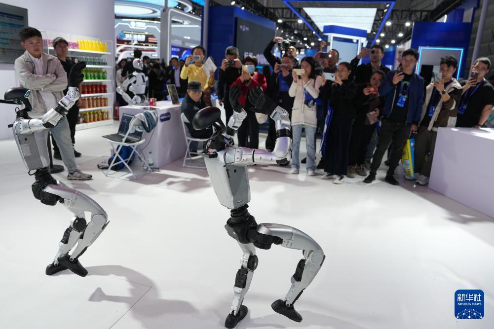 11月6日,观众在2025年世界互联网大会“互联网之光”博览会现场观摩人形机器人跳舞。 11月6日,2025年世界互联网大会“互联网之光”博览会在浙江乌镇开幕。本次博览会以“AI共生、光启未来”为主题,以“人工智能+”为展示重点,设置了两大场馆7个主题展区,汇聚了全球600多家企业带来的1000多项人工智能前沿技术产品。 新华社记者 黄宗治 摄