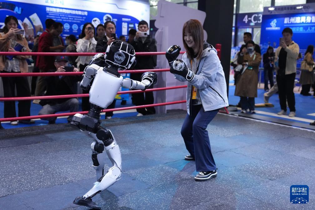 11月6日,观众在2025年世界互联网大会“互联网之光”博览会现场体验与宇树科技G1机器人“格斗”。 11月6日,2025年世界互联网大会“互联网之光”博览会在浙江乌镇开幕。本次博览会以“AI共生、光启未来”为主题,以“人工智能+”为展示重点,设置了两大场馆7个主题展区,汇聚了全球600多家企业带来的1000多项人工智能前沿技术产品。 新华社记者 黄宗治 摄