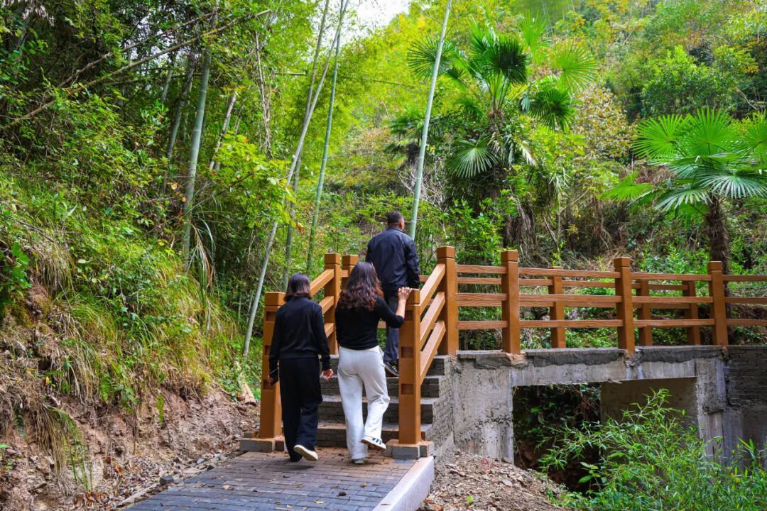 “这条步道升级后太好走了!有山有水,路面整洁,满眼都是好风光,走一圈心情特别舒畅。”谈起栈道的变化,钱园桥村村民陈阿姨满脸笑意。 这条步道正是近期完工的钱园桥村栈道优化提升工程。项目总投资约23万元,在原有栈道基础上升级完善,不仅优化了栅栏防护、完成步道硬化,还新增一座六角亭、两个宽约1.5米的涵洞,打造出集森林安全护道、人行山景步道、生态廊道于一体的郊野步道。该村拥有堑上紫藤、清代牛扼岭隘口遗址、诰屏山等自然与文化资源,步道的提升改造有利于串点成线,优化旅游资源整合。目前该步道已正式向公众开放,为周边村民和游客带来更丰富的休闲选择,也营造更舒适的游览环境。
