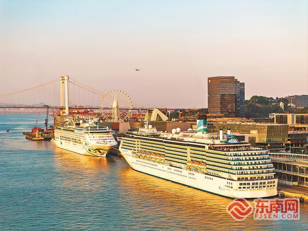 8日,“爱达·地中海”号与“领航星”号同日靠泊厦门国际邮轮母港。这是该港今年迎来的第三次双轮同靠。