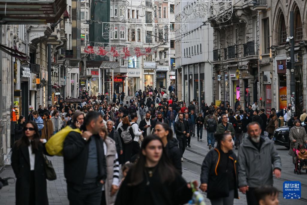 11月19日,人们在土耳其伊斯坦布尔的独立大街上逛街购物。 独立大街位于土耳其最大城市伊斯坦布尔欧洲一侧,街道两边商铺林立,是伊斯坦布尔最繁华的步行街。 新华社记者 刘磊 摄