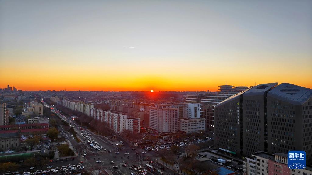 这是11月27日使用智能天文望远镜在北京宣武门附近拍摄的日出。
