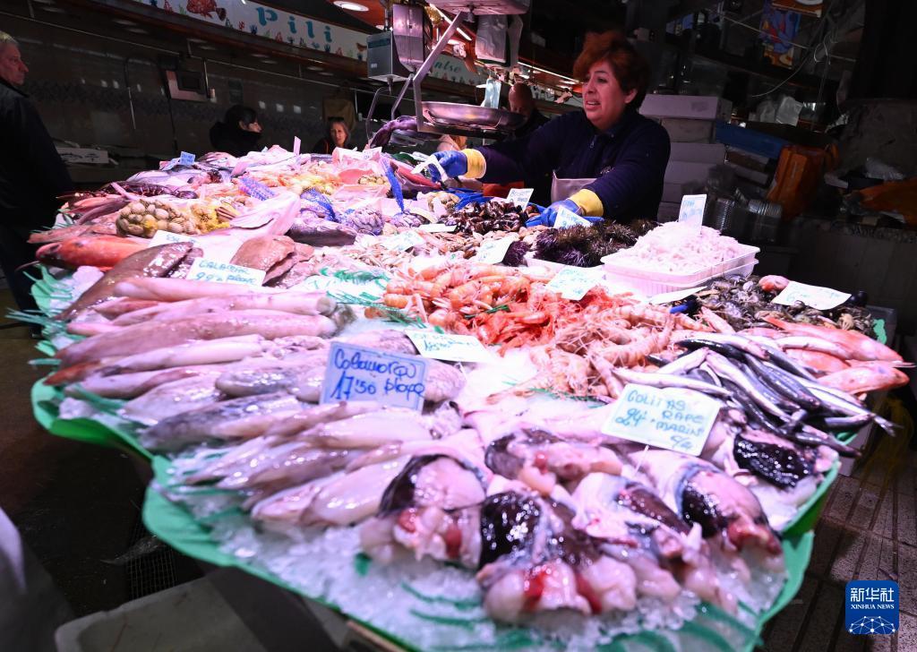 12月2日,摊贩在西班牙巴塞罗那市中心的博凯里亚市场售卖海鲜。 欧盟统计局2日公布的初步统计数据显示,欧元区11月通胀率按年率计算为2.2%,高于10月的2.1%,继续保持在欧洲央行的中期目标水平之上。 新华社记者 程敏 摄 |