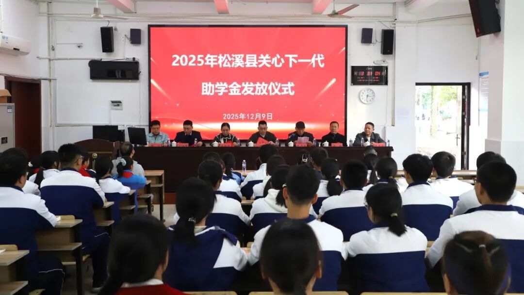 12月9日,松溪县关心下一代助学金发放仪式在松溪一中举行,为146名品学兼优、贫困大学生和中小学生发放助学金25万元,助力学子圆梦前行。县委常委、组织部部长许华荣出席活动。
