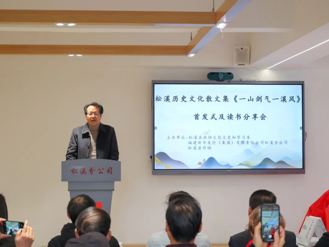 12月19日,松溪县历史文化散文集暨县政协文史资料第39辑《一山剑气一溪风》首发式暨读书分享会举行。县政协副主席吴付花,县委宣传部、县文联、县新华书店、县档案局等单位相关负责人,以及市、县级作家协会会员和文学爱好者代表参加活动。