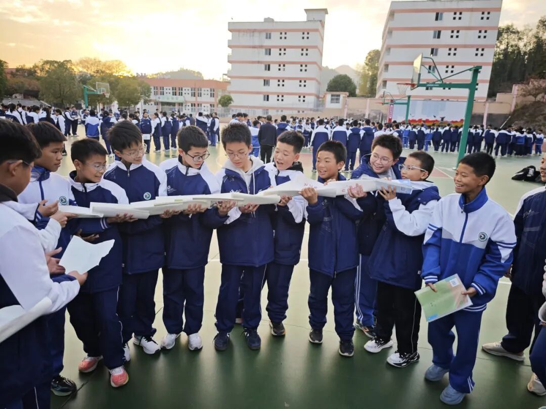 操场上,心理老师带领初一年级学生通过热身互动迅速融入集体,一系列设计巧妙的团体游戏逐步展开:“合力传球”考验沟通与配合,“人椅大作战”深化信任与支持,“动力圈”强化团队节奏与默契,“传递祝福”则以毛线串联起同窗间的温暖话语与真挚祝愿。每个环节均紧扣“合作、信任、沟通”主题,让学生在互动中体验集体力量,在协作中感受成长快乐。