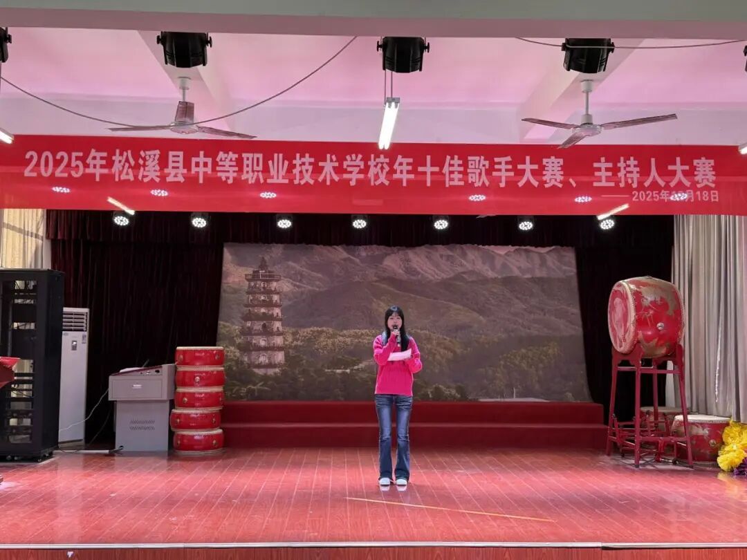 近日,松溪县中等职业技术学校在水南校区举办“最佳主持人暨十佳歌手”比赛,营造出活力洋溢的校园文化氛围,展现学生朝气蓬勃、奋发有为的青春风貌。