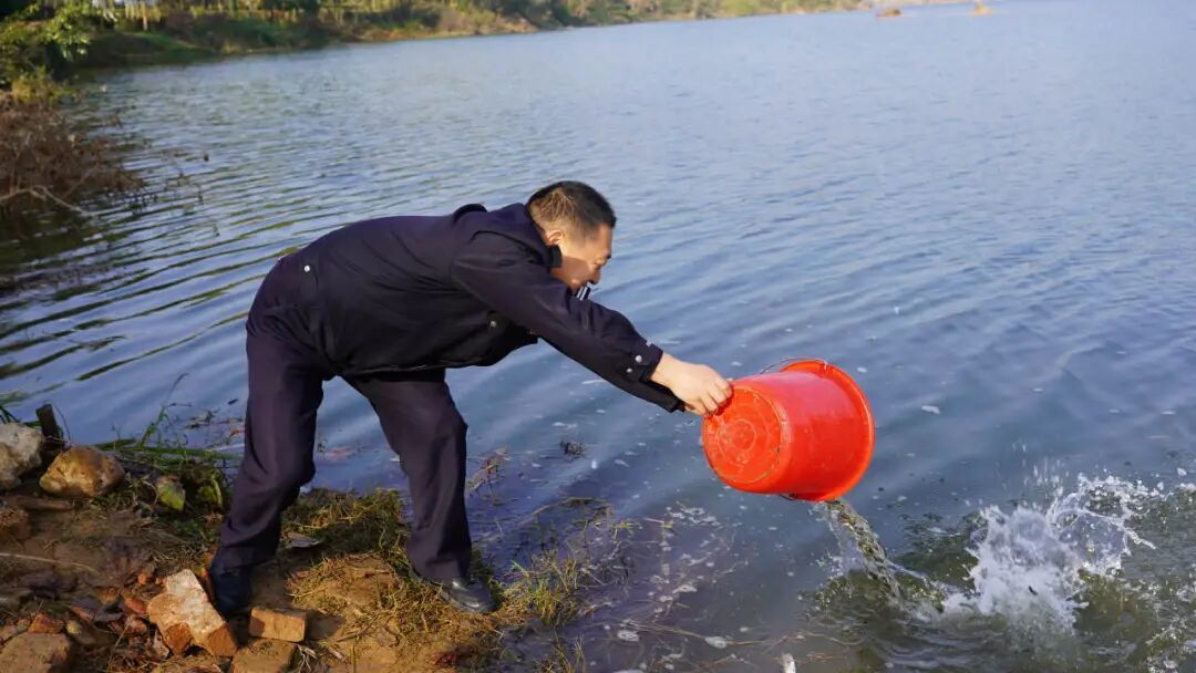 活动现场,工作人员将一桶桶鲜活的鱼苗小心转运至河岸,随着桶身轻倾,厚唇鱼、鳙鱼、鲢鱼、倒刺鲃等90万尾本地优质鱼苗尾尾跃入清波,转瞬游向河心深处,为寒意渐浓的松溪河平添了勃勃生机。