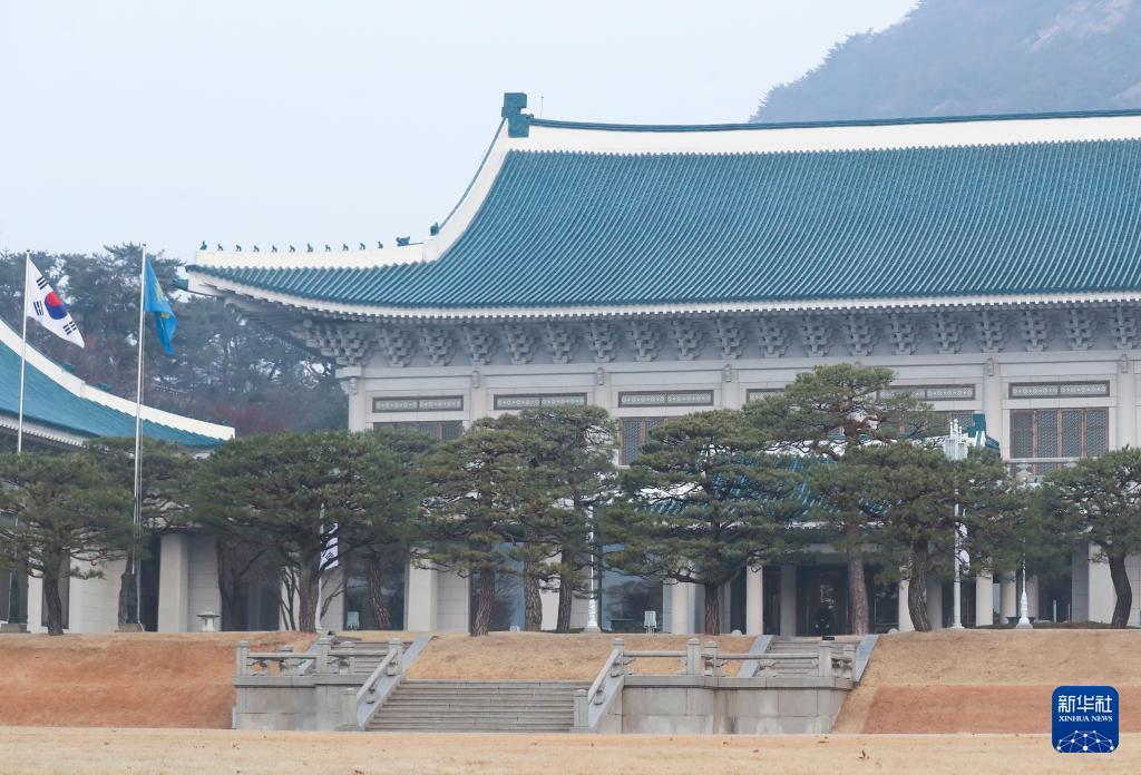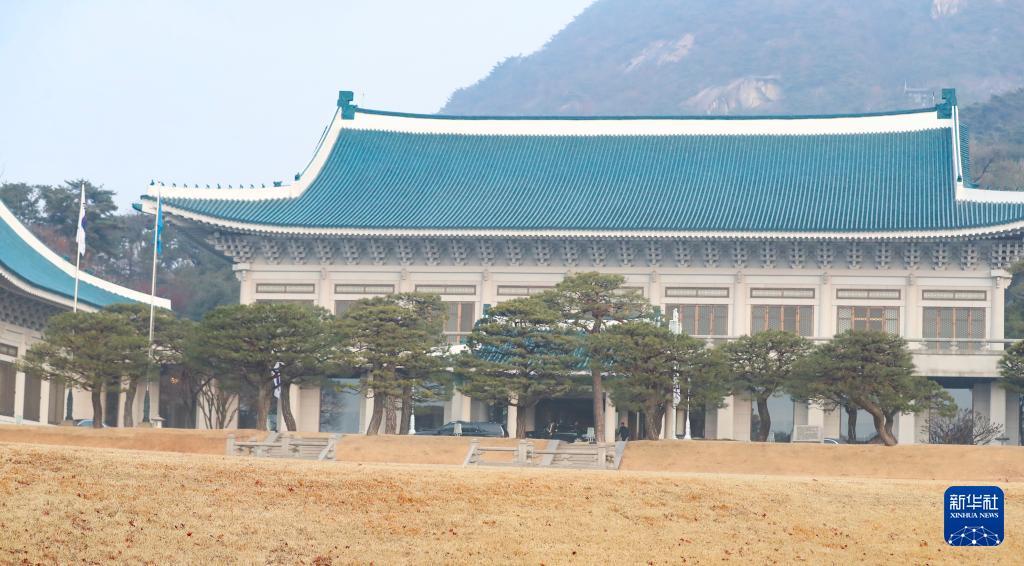 12月29日,在韩国首尔,青瓦台主建筑前飘扬着韩国国旗和象征韩国国家元首的“凤凰旗”。 当日,韩国总统府正式完成搬迁工作,时隔3年7个月迁回青瓦台。自1948年以来,青瓦台一直是韩国历任总统的官邸和办公场所。尹锡悦2022年5月就任总统后,将办公地点迁至首尔龙山区国防部大楼的新设总统府,青瓦台面向公众开放。李在明就任韩国总统后宣布把总统府迁回青瓦台。 新华社记者 姚琪琳 摄