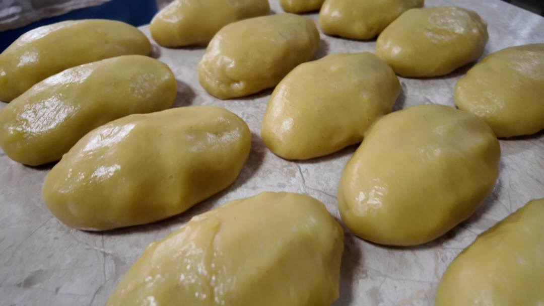 制作米冻粿,从碾米成浆开始。范丽芳将浸泡好的米碾出雪白米浆,再融入栀子果浆染出一抹温润琥珀色。按古法掺入草木灰碱水后,清冽的草木香与栀子果香交织升腾。灶火调至文火,她手持铁铲在锅中匀速搅动,米浆在持续的漩涡中逐渐胶化,铲起时拉出晶亮细丝,清新回甘的香气弥漫整个灶间。 “我们做米冻粿都用纯手工,加入天然的草木灰碱,品质更好,口感也更丰富。”范丽芳一边揉捏一边说道。凝固后的米浆在她手中如玉石般被揉捏成团,很快,一块块莹润如玉的米冻粿便整齐摆开。