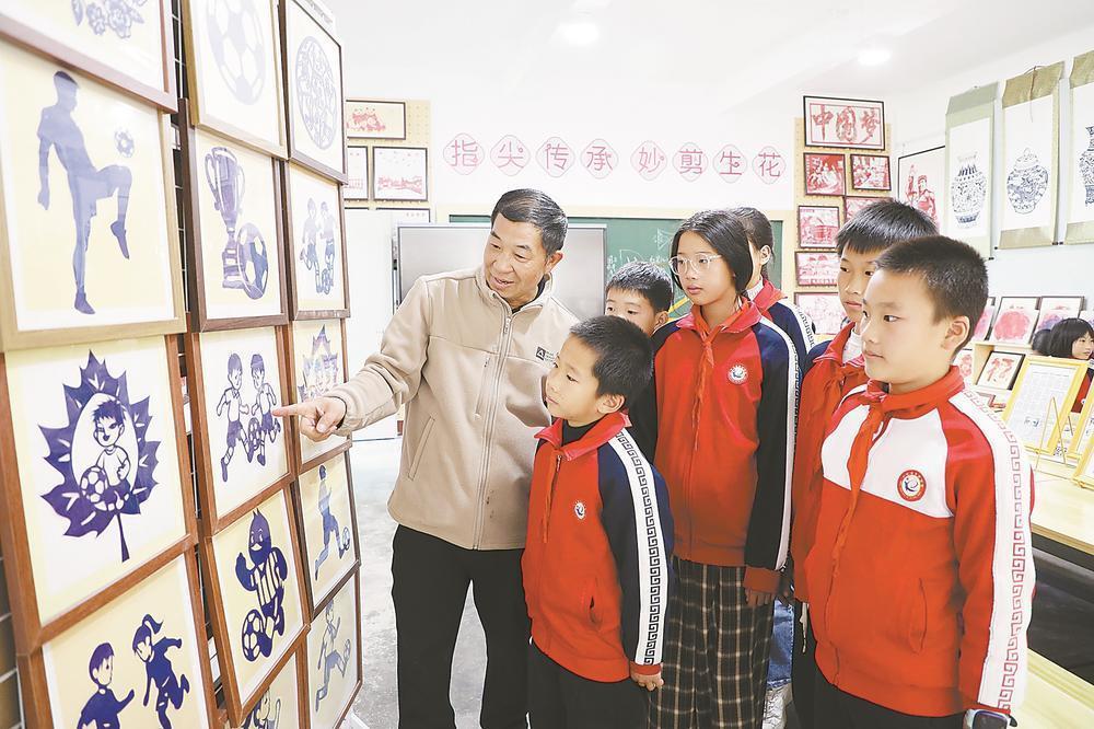 张仁锻(左一)给学生讲解剪纸技巧。(受访者供图) 东南网1月5日报道(福建日报通讯员 赖全平 巫秋) “同学们沉下心,指尖稳一点,剪刀慢一点,图案就能活起来……”2025年12月27日,在宁化县客家学校剪纸兴趣小组的课堂上,客家剪纸三明市非遗代表性传承人张仁锻俯下身,挨个手把手纠正孩子们的握剪姿势。 红纸在小手中翻折,剪刀开合间,足球、圆润饱满的“福”字、古色古香的客家建筑等图案渐次成型。小小的课堂里,优秀传统文化的种子悄然萌发。 宁化县地处闽赣边界,是闻名遐迩的千年古县、客家祖地。作为客家文化的鲜活载体,剪纸既保留着古老中原剪纸的淳朴底色,又融合南北方艺术特质。2025年12月,宁化县客家剪纸入选三明市第八批市级非物质文化遗产代表性项目。 剪纸是指尖的艺术,更是心灵的修行。身为三明市非遗剪纸传承人、福建省民间艺术家协会会员,张仁锻与剪纸的缘分始于童年时长辈的言传身教。工作后,这份热爱非但没有降温,反而愈发炽热。他的书桌前总摆着红纸与剪刀,一画一剪、一折一裁就构成了小小的艺术天地。 四十余载匠心坚守,张仁锻累计创作剪纸作品近3000幅。他的创作扎根客家文化土壤:《福宁桥》《宁阳古街》勾勒客家山水的灵秀,《北山革命纪念园》传承红色基因,花果禽兽、民俗场景等题材则通过象征寓意的手法,寄托着客家人对美好生活的向往,尽显客家文化的鲜活生命力。 剪纸是中华民族优秀民间艺术的代表,也是小学美术教学的重要组成部分。2023年9月,张仁锻接手东风小学剪纸兴趣小组的教学。他深知传承非遗不能急功近利,便从握剪姿势、折叠角度等基础知识教起,结合传统节日设计课程:蛇年新春,教学生剪“蛇盘福”,让灵动线条与吉祥寓意相融;端午前夕,带着学生剪粽子、话屈原,让技艺传承伴着文化讲解。 “每一张剪纸都有灵魂,传承比创作更重要,要让学生既懂技法,更懂作品背后的文化内涵。”张仁锻说。 面对性格各异的孩子,他因材施教,总有“专属妙招”。三年级女生巫雨萱曾因剪不好花瓣,偷偷地将作品揉成一团藏起来。张仁锻看见后并没有批评她,而是拿出儿童剪纸绘本,指着上面的卡通形象说:“我们把剪刀当成画笔,顺着线条慢慢走,肯定能剪出好看的花瓣。”他还特意找来带虚线的练习纸,陪着巫雨萱练“追线”。日子久了,巫雨萱的手艺越来越娴熟,如今还成了可以辅导同学的剪纸“小老师”。 好动的男生张永顺总把剪刀当玩具,上课不是乱剪一通,就是偷偷摆弄剪刀。张仁锻先带他欣赏校内的剪纸作品展,再为他制定“阶梯任务”:先练笔直线条,再攻克弧线,最后挑战复杂的套色剪纸。得知张永顺爱踢足球,张仁锻特意教他剪足球明星卡通像,剪得好就给予奖励。张永顺的剪纸积极性就这样被调动起来,不仅上课专注,作品《荷塘月色》还成了校园里的“网红作品”。 “现在好多孩子一有空就琢磨剪纸,玩手机少了,做什么事都更专注!”孩子们的变化让张仁锻很欣慰。 走出校园,张仁锻更努力将客家剪纸艺术发扬光大。他在宁化县文化馆、社区及兄弟学校开设公益课堂,免费传授剪纸技艺。 在宁化县老年大学,张仁锻总会特意放慢授课节奏。“大家先把纸对折,边角一定要对齐,画图案时记得留好连接点,否则剪下去容易散架。”针对老年学员动手能力弱,他用通俗易懂的语言拆解着剪纸要领,每个细节都多次示范。 跟着张仁锻学习后,68岁的黄华英终于剪出了自己满意的作品《绽放的梅花》。“张老师讲得太细致了,连剪刀怎么拿都教得明明白白,看着红纸上镂出的朵朵梅花,我也很有成就感!”老人的话语里满是自豪。 一把小剪刀,裁出缤纷万千;一纸红窗花,传承文化根脉。在张仁锻眼中,每一张红纸都藏着客家儿女的情感与期盼,每一剪都延续着传统艺术的生命力。在他的带动下,越来越多宁化人爱上剪纸,在指尖的方寸之间感受着客家文化的独特魅力。 |
