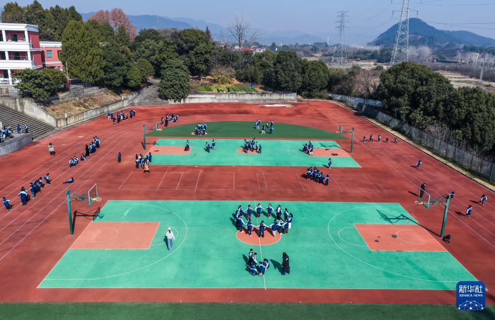1月9日,在诸暨市陶朱街道白门完小的操场上,学生们正在参加传统游戏课(无人机照片)。 近期,为丰富学生课间生活、传承中华优秀传统文化,浙江省诸暨市陶朱街道中心学校下属各小学开设了传统游戏课程,打陀螺、跳房子、踩高跷等多项传统游戏让学生们玩得不亦乐乎。 新华社记者 徐昱 摄 |