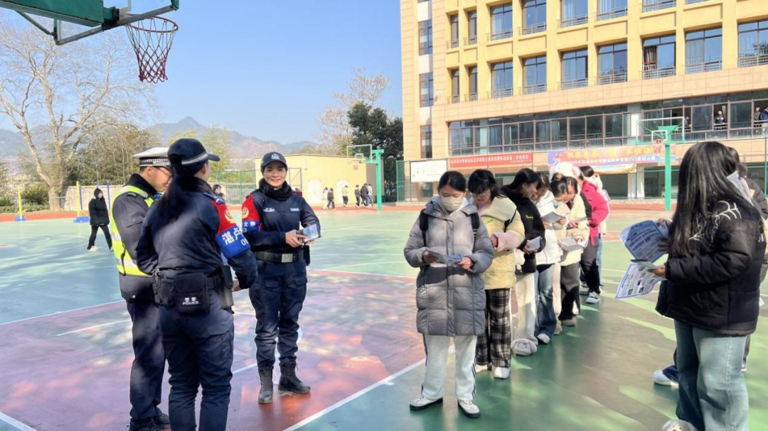近日,松溪县公安局湛卢女子警务站联合水南社区,走进县中等职业技术学校水南校区,开展“关爱生命,文明出行”交通安全宣讲活动,为同学们送上新年安全“大礼包”。