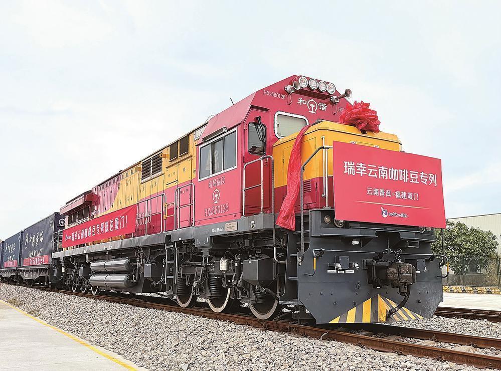 21日,“瑞幸号”云南咖啡豆专列顺利抵达厦门。