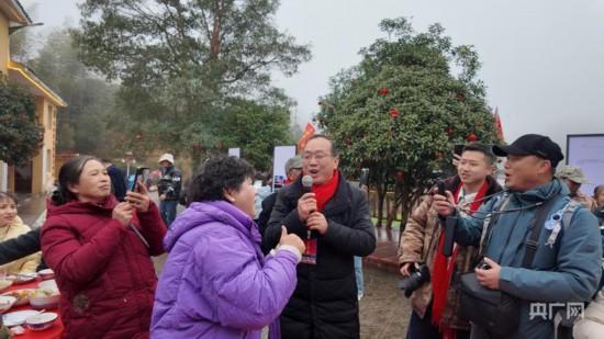 茅坪镇干部刘卫东为村民演唱歌曲(央广网记者 郇康新 摄) “下面由本人为大家献唱一首《故乡的云》,唱得不好,大家不要笑得太厉害啊。”村支书彭展阳拿着麦克风插科打诨,饭桌上乡亲们早已笑成了一团。宴席上,镇上和村里的干部轮番登台,唱歌、说笑话、唠家常,没有拘谨的客套,只有接地气的欢喜。乡亲们一边扒着饭、夹着菜,一边跟着节奏鼓掌、哼唱,脸上都挂着藏不住的笑意,暖意融融的氛围,把整个山村包裹得格外热闹。 “以前过年都在外地,在外打工舍不得回家的路费,哪能想到现在的日子能过得这么好!”村民彭德良端起一碗村里自产的米酒,眼角藏不住欢喜,“去年我们家的茶叶生意又上了一个台阶,后山种的黄桃销量也越来越好,喜事是一件接一件!”