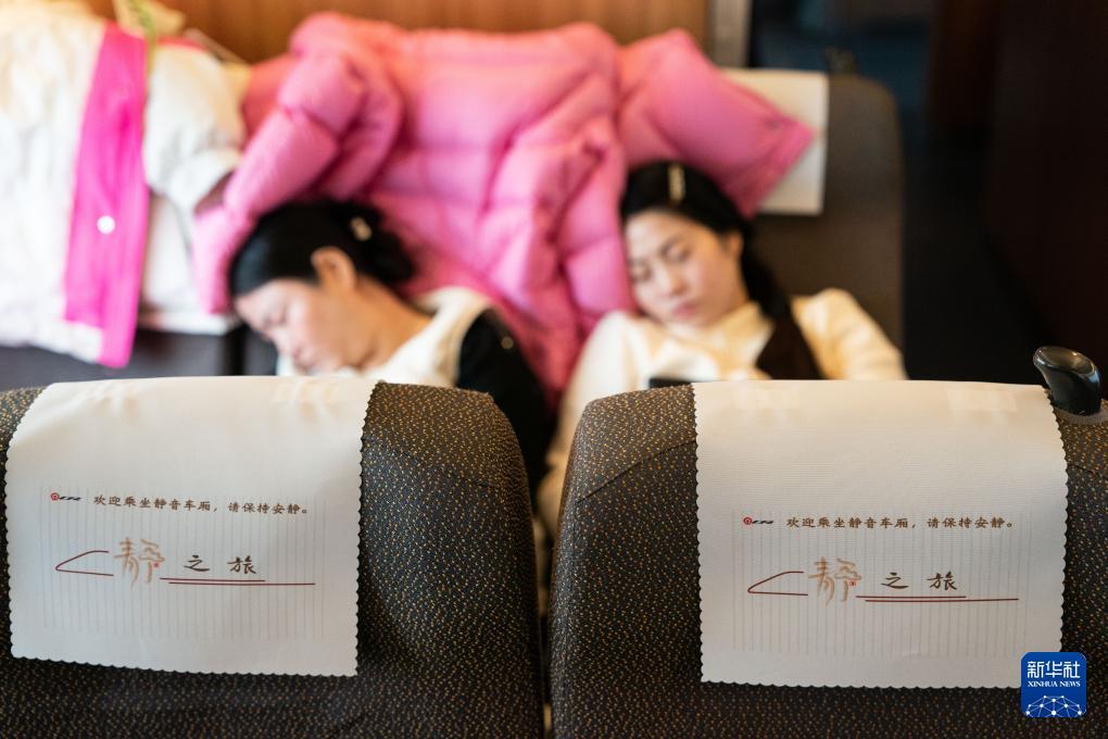 2月1日,乘客在G54次列车静音车厢内。 自2月1日起,高铁“静音车厢”服务将拓展至除动卧列车之外的“D”字头、“G”字头部分列车,全国铁路提供“静音车厢”服务的列车将超8000列。 新华社记者 杜宇 摄