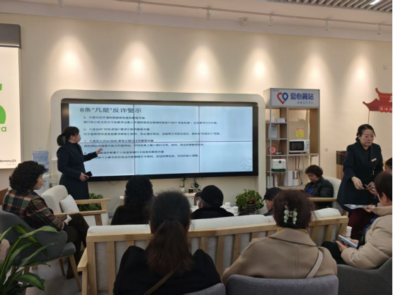 活动现场,营业厅“爱心翼站”的“爱心大使”围绕老年人易遭遇的保健品诈骗、冒充亲友诈骗、虚假理财诈骗等常见骗局,通过发放防诈宣传手册、播放警示短片,结合近期真实案例,以本地化、口语化的方式,讲解诈骗分子的作案手法与话术陷阱。同时,手把手指导老人下载注册“国家反诈中心”APP、设置来电预警,教学辨识可疑短信和虚假网站,帮助老年群体筑牢科技防诈屏障。活动还设置问答环节,老人们踊跃提问咨询,工作人员逐一细致解答,现场互动氛围热烈。 “以前接到一些说是公安局、法院的电话,心里就发慌。今天听了讲解,明白了他们是怎么骗人的,以后就知道该怎么应对了,心里踏实多了。”参加活动的王阿姨感慨地说。
