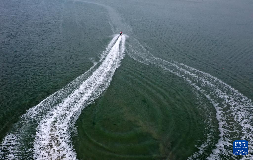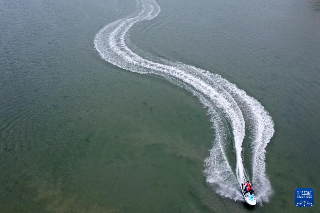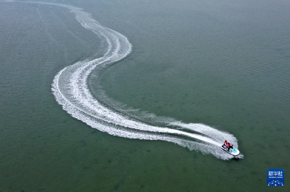 2月5日,游客乘坐摩托艇在广西北海市海上游玩(无人机照片)。 立春时节,广西北海市气温逐渐回暖,不少游客乘坐摩托艇等工具在海上冲浪游玩。 新华社记者 陆波岸 摄