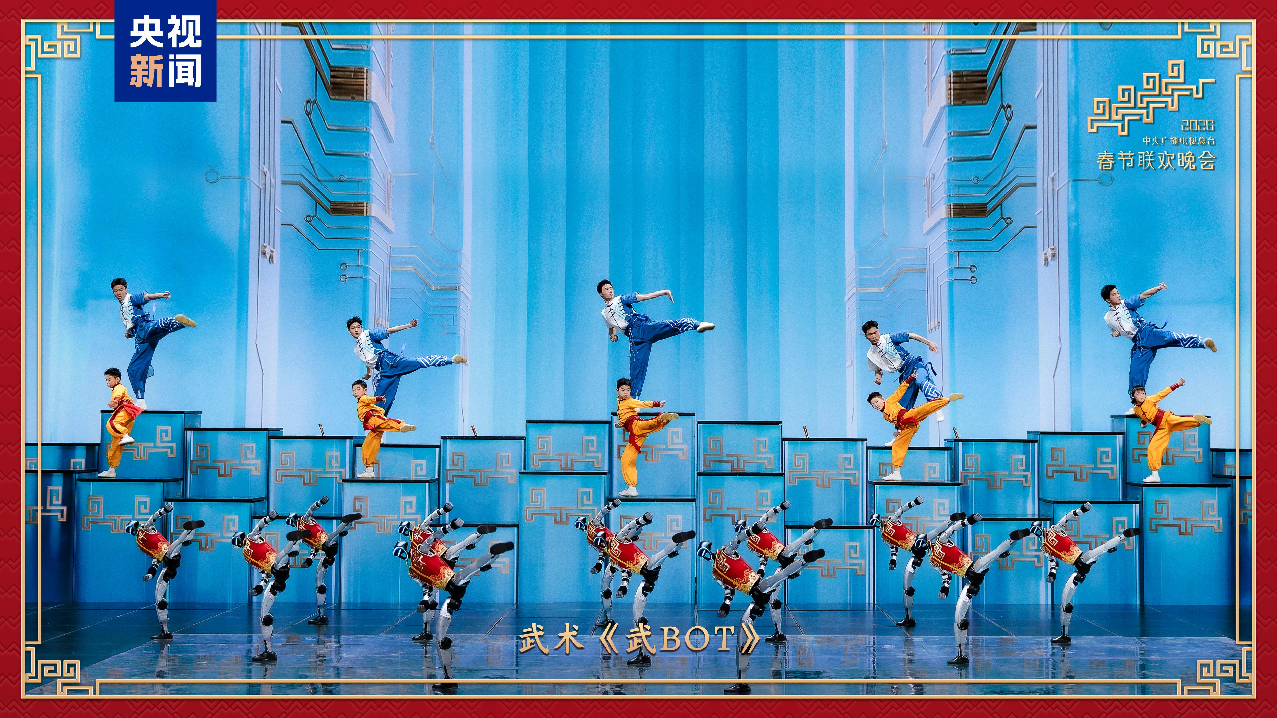 科技智造添彩 人形机器人再登春晚舞台,在《武BOT》中化身“武林高手”,一招刚劲如松,一式灵动如风,中国智造的硬核实力与中华武术的千年神韵相互交融。来自海峡两岸和港澳的表演者陈小春、言承旭、罗嘉豪、易烊千玺联袂演唱《智造未来》,唱出未来已来、科技赋能美好生活的万千精彩。