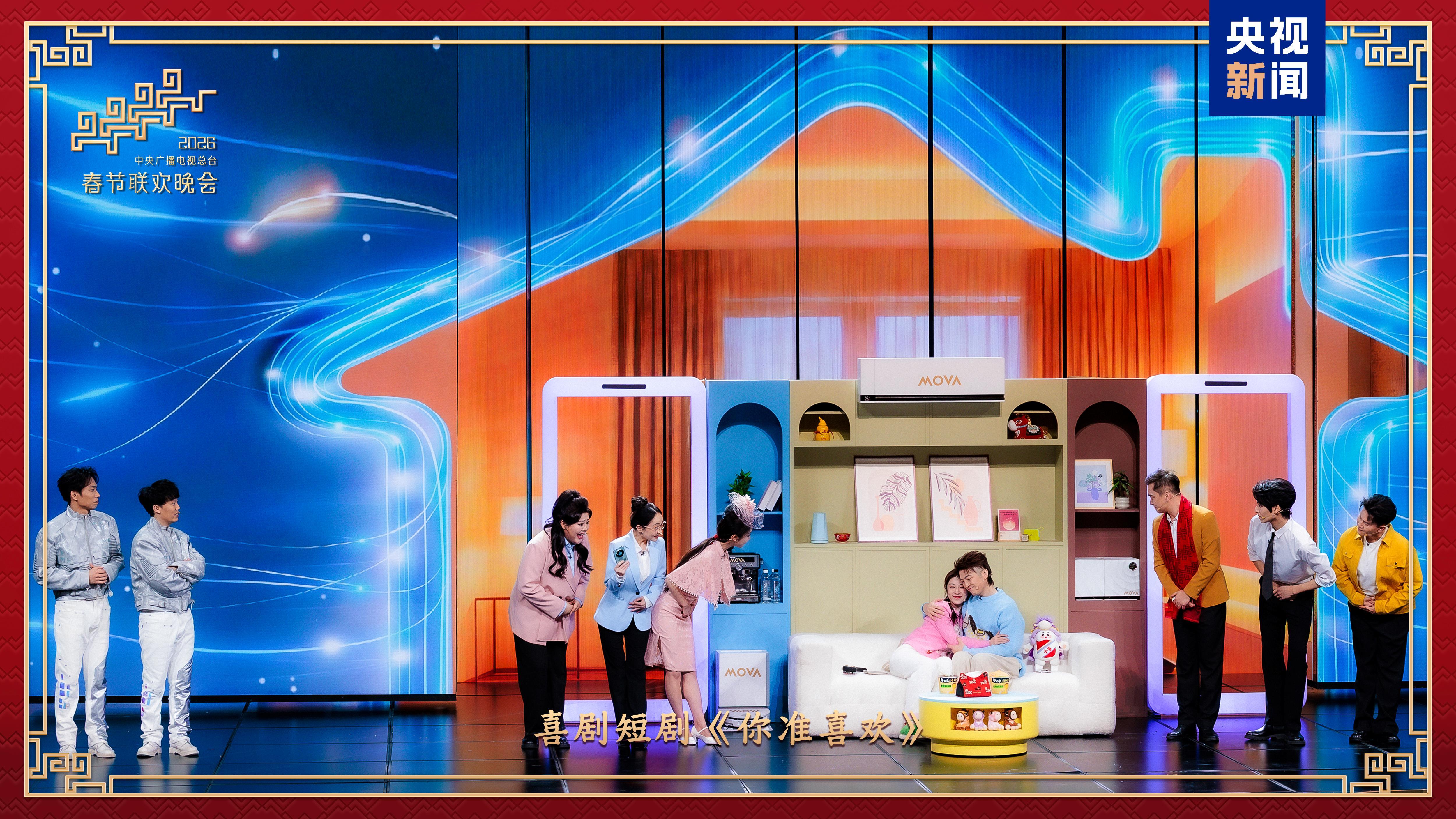 蔡明与王天放带来小品《奶奶的最爱》,聚焦机器人融入家庭生活场景,笑声与误会交织中藏着祖孙间最真挚的爱与惦念。喜剧短剧《你准喜欢》用轻松诙谐的方式演绎数字时代“越刷越上头”的状态,引发对社交媒体产品“有意思”和“有意义”的思考。