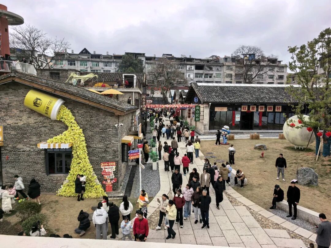 特色市集里,闽北特色小吃香气四溢,煎炸蒸煮的烟火气直抵人心,引得游客纷纷驻足品尝;拍照打卡、亲子互动等新春活动轮番上演,大人孩童的欢声笑语此起彼伏,处处洋溢着热闹温馨的节日气息。标志性的烟囱观景台、怀旧主题墙前,市民游客络绎不绝,全家出游、亲友结伴的身影随处可见,大家逛景点、品美食、享团圆,用镜头定格新春美好瞬间。