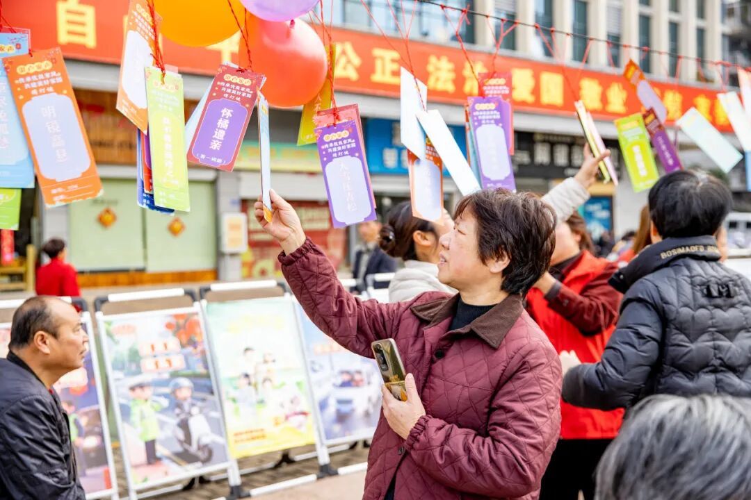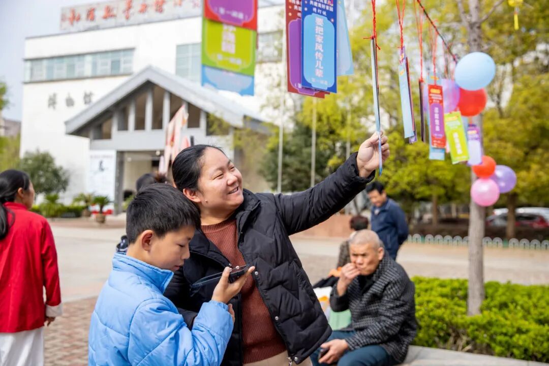 当天上午,广场上人头攒动,三百余条彩纸制成的灯谜悬挂在空中,内容涵盖传统家训、廉洁格言、邻里和睦等方面,既有趣味性又富含教育意义。市民们或三五成群讨论,或独自凝神思考,现场气氛热烈。大家在开动脑筋的同时,也潜移默化地接受了家风文化的熏陶。 活动现场还特别增设“‘湛卢家声’廉洁家庭倡议”环节,工作人员向市民代表发放倡议书,号召广大家庭成员从自身做起,从家庭做起,传承清廉家风,争做廉洁家庭的倡导者、守护者和践行者。一张张倡议书传递到市民手中,将廉洁理念从广场延伸至千家万户。