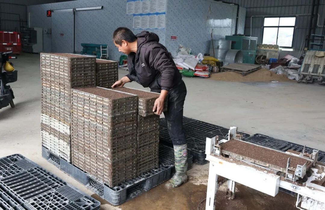 惊蛰已过,春耕正酣。在河东乡大布村的松溪县新农农林专业合作社内,一派繁忙而有序的景象。今年新投用的自动播种流水线全速运转,工人们熟练地配合机械进行装盘、播种、覆土,一盘盘播好种子的育苗盘整齐码放,即将送入催芽室。