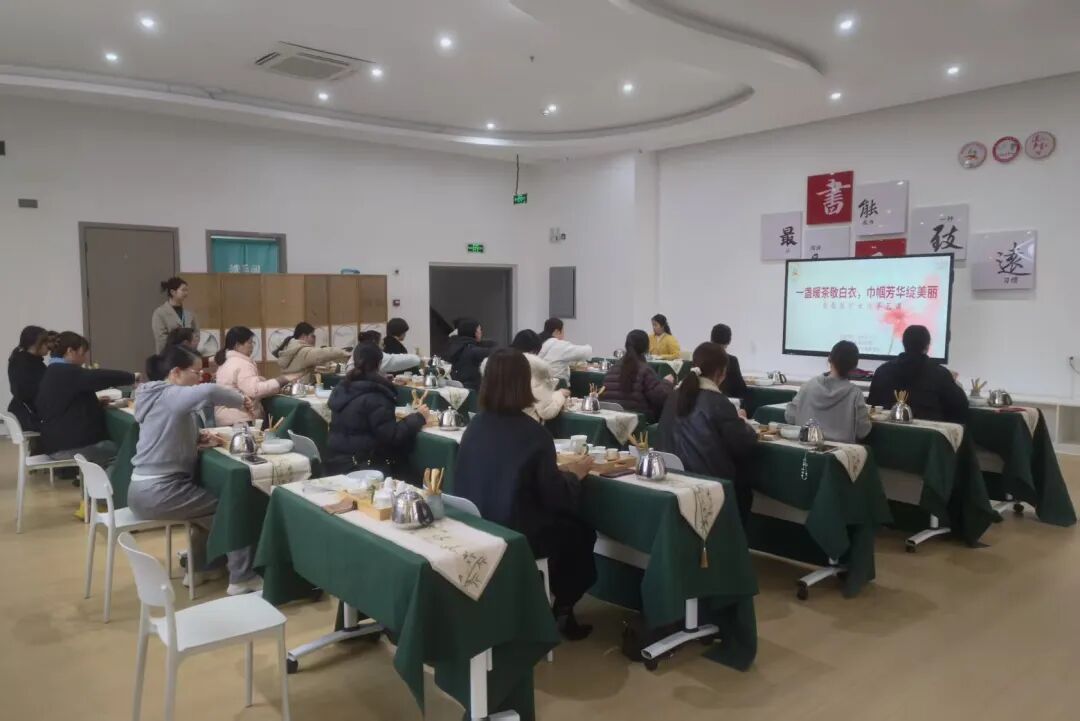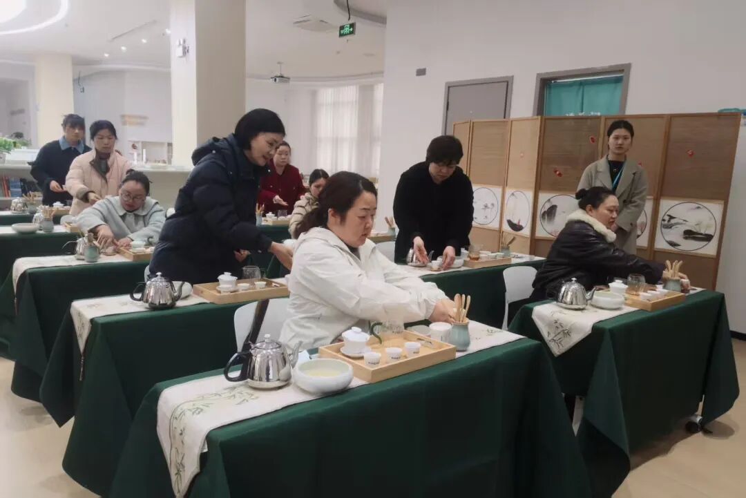 活动当天,医护人员走进湛卢文化体验馆,在浓厚的地方文化氛围中开启心灵之旅。悦谷茶庄主理人叶秀荣担任主讲,从温杯洁具、精准投茶到注水冲泡,细致拆解茶道礼仪,并深入浅出地讲解茶疗养生知识。在老师的指导下,大家亲手泡制暖茶,于氤氲茶香中放慢脚步,静心品茗,沉浸式感受传统茶文化的独特魅力,暂时卸下工作的疲惫与压力。