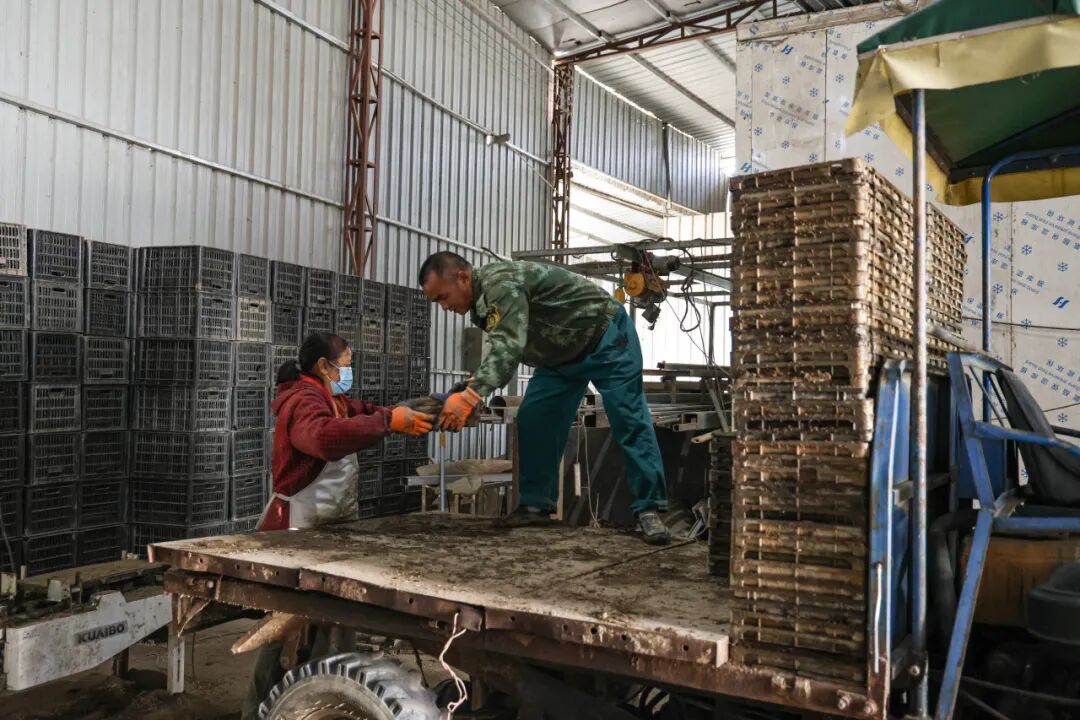 在松溪兴农农机专业合作社,全自动育秧机正不停运转,工人们将一个个再生稻育秧盘放进输送带,育秧机便自动将底土、种子铺上秧盘,一台机器可同时完成放置底土、喷洒水分、机械播种、覆盖基质土等工序。完成后,秧苗被送至密闭暗室,进行暗育出苗,然后被移至育秧大棚内保温催芽。