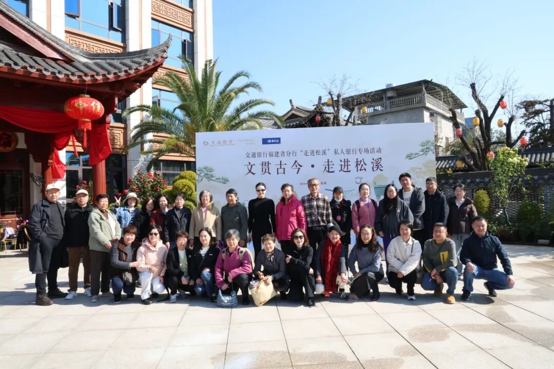 近日,交通银行福建省分行组织开展“走进松溪”私人银行专场活动,邀请私人银行客户代表走进松溪,实地感受乡村振兴新成效,共话产业发展新机遇。 活动期间,客户代表团一行先后前往梅口埠景区、松溪“1955·粮仓里”、县博物馆、版画院等地,边听边走边看,见证乡村文旅融合新亮点,系统了解松溪深厚历史底蕴,感受特色文旅魅力。他们表示,松溪立足自身历史文化与生态资源优势,在乡村振兴实践中走出了特色发展之路,文旅融合有声有色、特色产业潜力巨大,既守护了生态本底,又激活了发展动能,让人印象深刻。