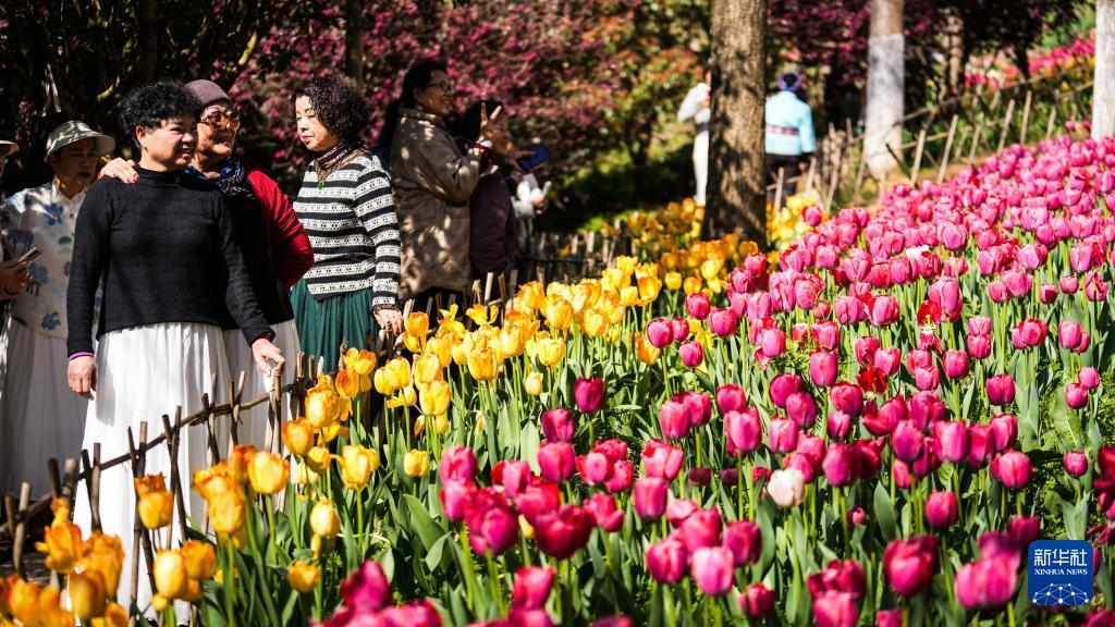 游客在龙里县龙架山国家森林公园内赏花游玩(3月12日摄)。 近日,贵州省黔南布依族苗族自治州龙里县龙架山国家森林公园内的数万株郁金香竞相绽放,吸引各地游客前来游玩赏景。 近年来,龙里县依托良好的生态环境和区位优势,大力发展“美丽经济”,通过种植四季花海,完善旅游基础设施,推动单一观光向综合消费升级,为“赏花”经济注入强劲活力。 新华社记者 陶亮 摄