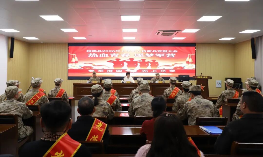 戎装加身担使命,青春激昂启新程。3月19日,松溪县举行2026年春季新兵入伍欢送大会,热烈欢送即将踏上军旅征程的松溪籍优秀青年。县征兵领导小组副组长、副县长叶芸出席,县征兵领导小组副组长、县人武部主要领导马辉主持会议。 大会在激昂的国歌声中拉开序幕。大会宣读了批准入伍人员名单,并向光荣入伍的“松溪好儿郎”表示热烈的祝贺,向积极送子参军的新兵家长致以崇高的敬意。希望全体新兵,要永葆绝对忠诚,时刻牢记祖国的利益高于一切,扎根军营,建功立业。要传承红色基因,牢记军人职责使命,努力把自己锻造成“有灵魂、有本事、有血性、有品德”的新一代革命军人。要树立建功之志,不怕困难、不怕吃苦、敢打敢拼,为部队争光、为家乡争光、为亲人争光。 “参军是我一直以来的梦想,我家爷爷、外公、爸爸都当过兵,我会继承父辈荣光,用青春保卫国家,不辱使命,不负这身军装。”新兵江晟轩难掩兴奋之情。 新兵家长代表在会上深情发言,叮嘱孩子们要始终心怀家国,以实际行动践行时代使命、扛起社会责任。家长们纷纷表示,看着孩子光荣入伍,非常高兴,希望他们进入部队之后,能够积极学习各种本领,为国家做一点贡献。 欢送大会在《中国人民解放军军歌》声中落下帷幕。新兵们身披绶带、胸戴红花,精神抖擞地踏上征程,即将告别亲人和家乡,开启崭新的人生旅程。