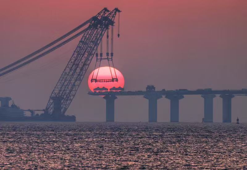 2月13日清晨,厦金大桥建设现场,一轮巨大的红日跃出海面,仿佛被施工吊臂“夹”起,定格住了工程巨构与自然霞光交相辉映的壮美瞬间。 陶卉摄 经贸合作持续畅通。福建拧紧“合作链”,激活“强引擎”,持续深化闽台产业融合,聚焦电子信息、机械装备、石油化工、现代农业、海洋经济等重点领域,搭建高水平合作平台,14个国家级台湾农民创业园实现九市一区全覆盖,数量占大陆三分之一以上,台创园综合考评连年包揽大陆前列。五年来,福建实际利用台资超30亿美元,闽台贸易额约4800亿元,新设台企户数、实际使用台资规模持续位居大陆前列,闽台贸易额稳步增长,跨境电商、冷链物流、数字经济等新业态蓬勃发展。 行业标准率先共通。为破除两岸融合发展的制度性壁垒,福建出台大陆首部促进两岸标准共通的地方性法规《福建省促进两岸标准共通条例》,建成大陆首个两岸标准共通信息与服务平台,研制两岸共通标准326项,在机械制造、农林渔业、现代服务业等多个领域实现标准互认、资质互通,让两岸融合发展更具质感、更有效率。 “两岸融合发展步伐正在加快,这不仅是福建的战略机遇,也是台商台企在大陆发展的新契机。”扎根大陆发展数十年的全国台企联常务副会长、厦门台商协会荣誉会长吴家莹表示,“十五五”新征程开启,福建高质量建设两岸融合发展示范区步履坚实,台商台企对在福建扎根发展更加坚定、更有信心。