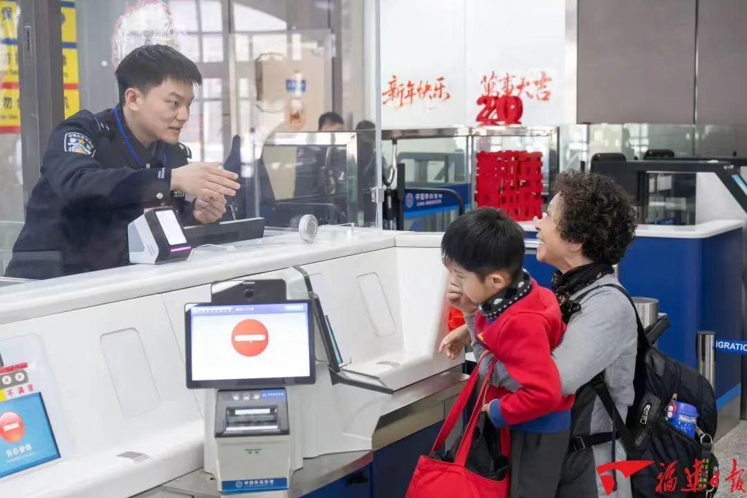 2月14日,福州黄岐客运站通关现场,边检民警耐心为老人及孩子服务。福建日报记者 王毅 摄 融合发展,基础在通,关键在畅。习近平总书记在《告台湾同胞书》发表40周年纪念会上提出了“两岸应通尽通”的主张,福建一步一个脚印、一项一项抓实,把总书记的重要指示转化为建设两岸融合发展示范区的实践行动。 基础设施提速联通。作为台胞台企“登陆”的第一家园,福建持续优化海空立体交通网络,全力保障“小三通”航线常态化稳定运行,马尾—马祖、连江黄岐—马祖、厦门—金门、泉州—金门等“小三通”客运航线班次加密、服务升级。五年来,累计运送旅客407.4万人次,成为两岸融合发展的“黄金水道”。 能源资源循序互通。厦金大桥(厦门段)建设稳步推进,福马通水(大陆侧)工程全面完工,福建向金门供水工程累计供水突破4700万吨;向金门、马祖通电通气项目前期工作扎实推进,各项技术方案不断完善,“新四通”从蓝图一步步变为实景。