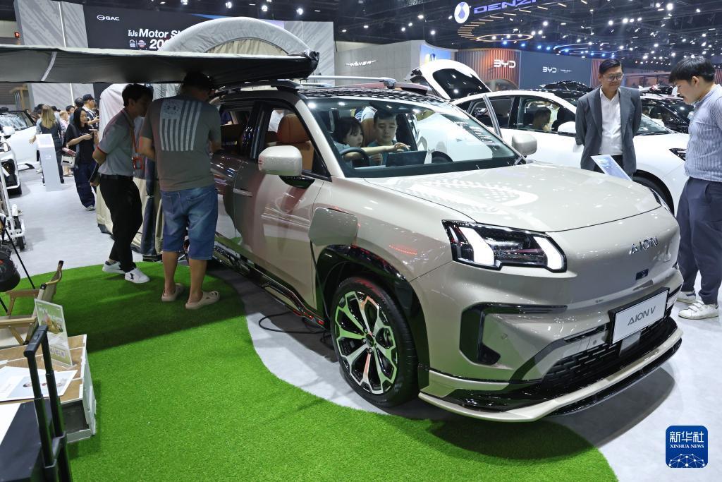 这是3月26日在泰国曼谷国际车展上拍摄的埃安V电动车。 第47届曼谷国际车展于3月25日至4月5日在泰国暖武里府举办。 新华社记者 孙玮彤 摄