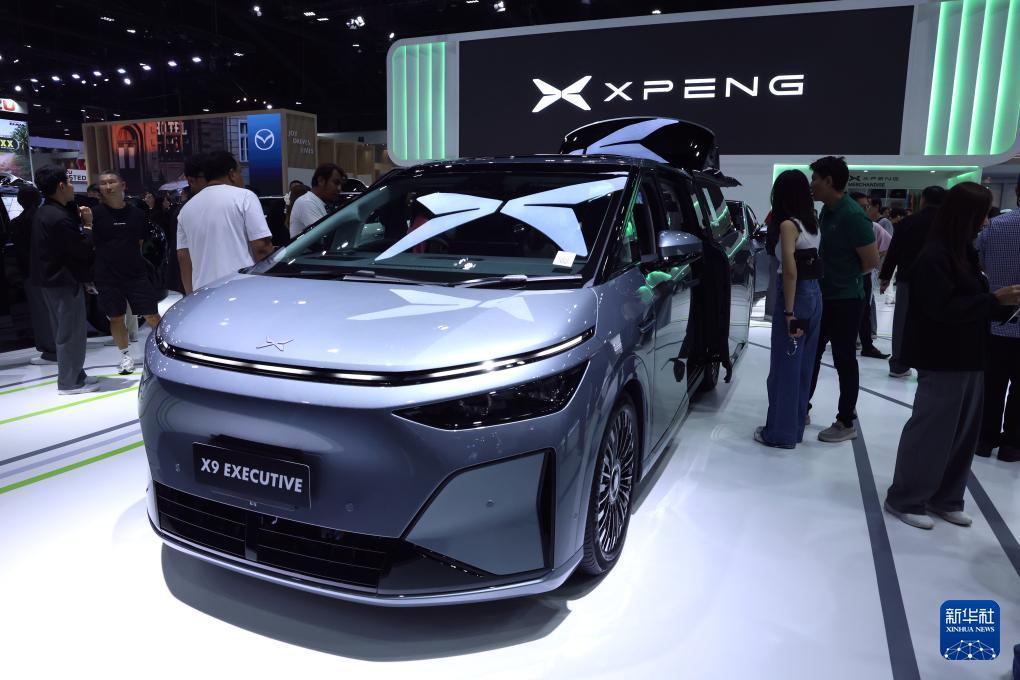 这是3月26日在泰国曼谷国际车展上拍摄的小鹏X9电动车。 第47届曼谷国际车展于3月25日至4月5日在泰国暖武里府举办。 新华社记者 孙玮彤 摄